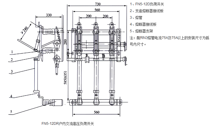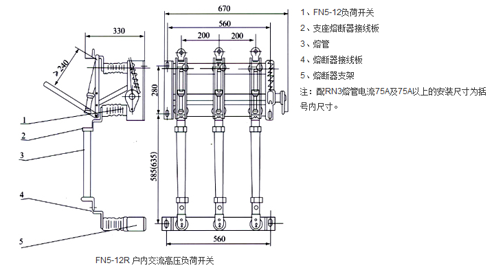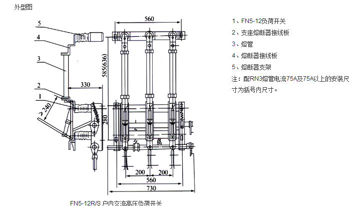 FN5-12R(L)型户内交流高压负荷开关-熔断器组合电器是我厂吸收消化国外先进技术,结合我国的供电要求,自行设计研制而成的。该产品经全面型式实验和长期的试运行考核、性能达到IEC420《交流高压负荷开关-熔断器组合电器》(1990版)和GB3804 《3-63KV交流高压负荷开关》标准要求,与国外同类产品比较,技术参数已达到同类产品水平,具有体积小、重量轻,可用于环网柜和箱式变电站,广泛应用于12KV线路的电能分配,并有效地避免了设备的缺相运行。