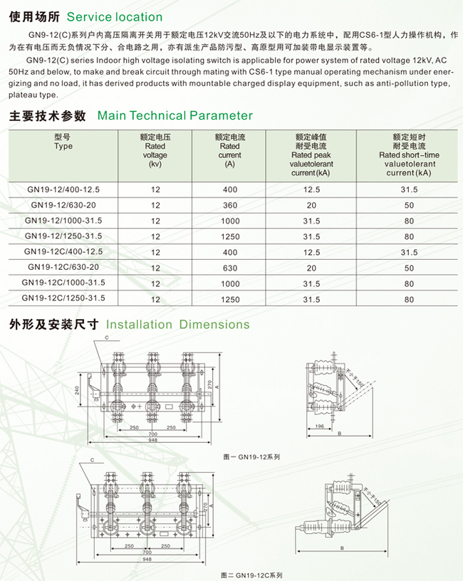 GN19-12(C)系列户内交流高压隔离开关